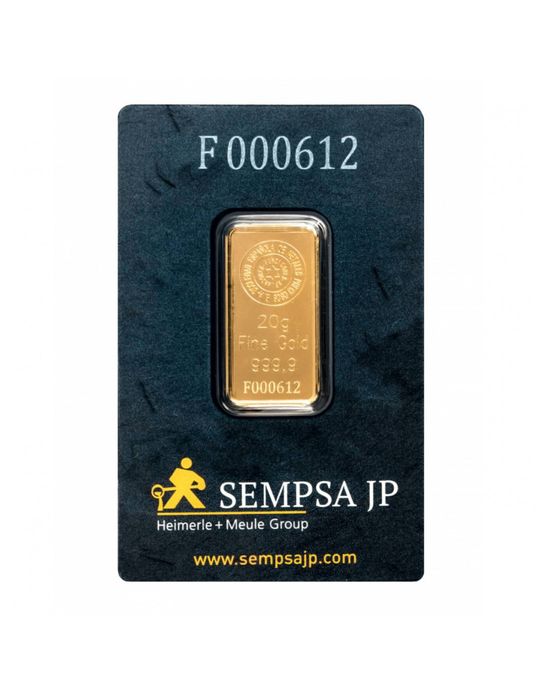 Ce lingot d'or de 20 grammes arbore une finition polie de haute qualité et est marqué SEMPSA.