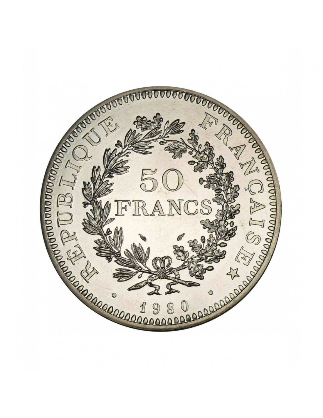 Très récente, la pièce en argent 50 Francs Hercule a été frappée pour la première fois en 1974, jusqu'en 1980, à 46 410 266 exemplaires. A l'instar de la pièce de monnaie 10 Francs Hercule, la production de la 50 Francs Hercule Argent prit fin, pour des raisons budgétaires, lors de l'envolée du cours de l'argent. Elle fut démonétisée peu après sa dernière frappe, le 30 avril 1980.