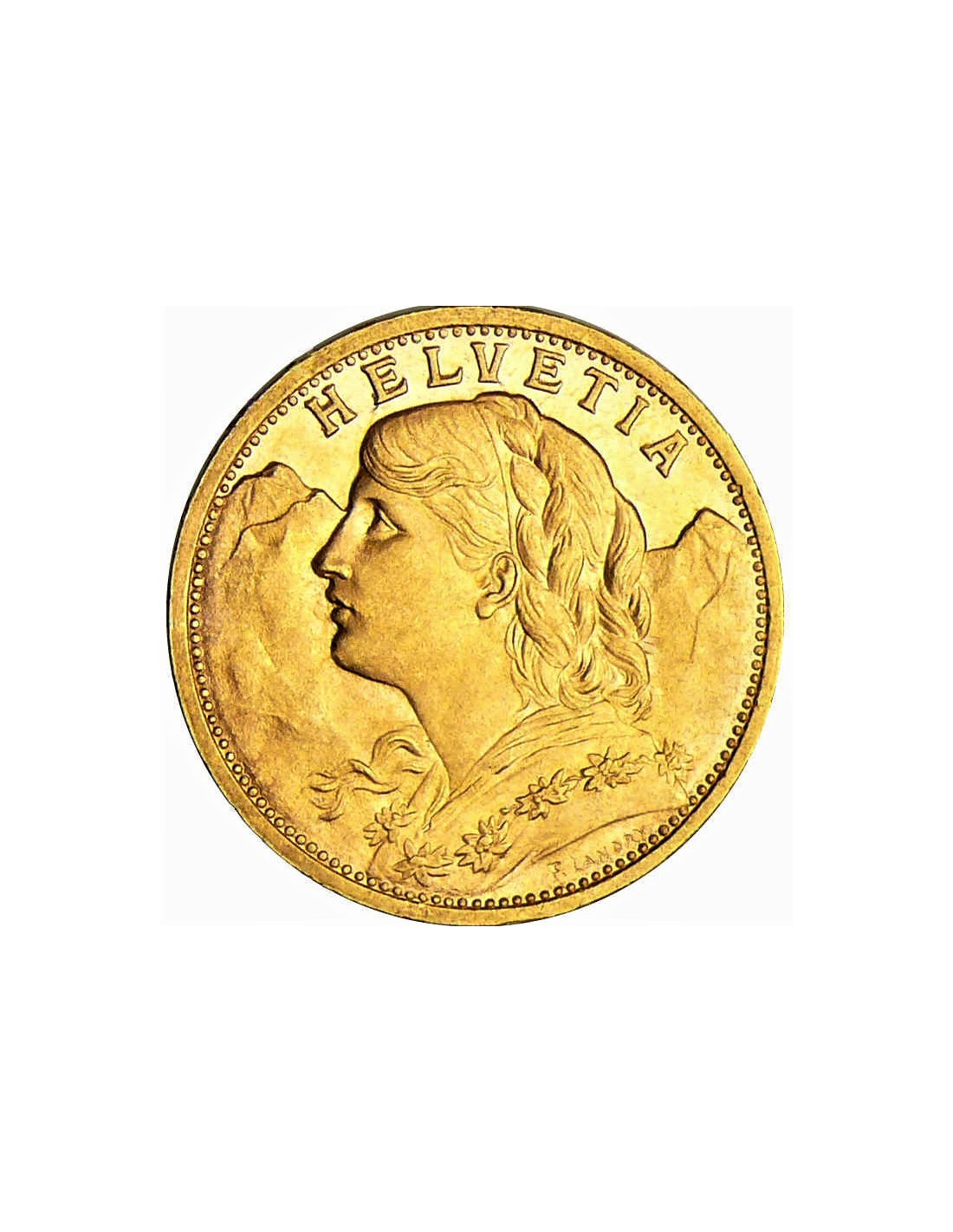 Monnaie d'investissement par excellence de grande renommée, elle est mondialement connue. La 20 Francs Suisse dispose de belles qualités et peut convenir aussi bien aux investisseurs débutants qu'aux connaisseurs confirmés. Aujourd'hui, sa prime est encore faible en France, contrairement au 20 Francs Napoléon. « Le charme de l'or Suisse », monnaie de garde par excellence, on la trouve généralement dans de très bons états de conservation, elle circule de banque en banque.