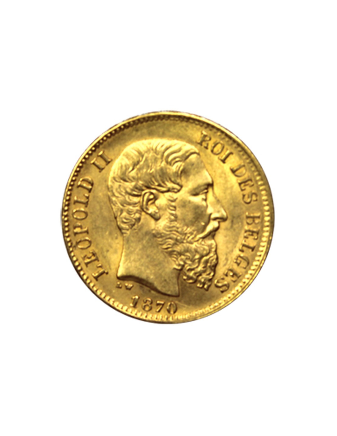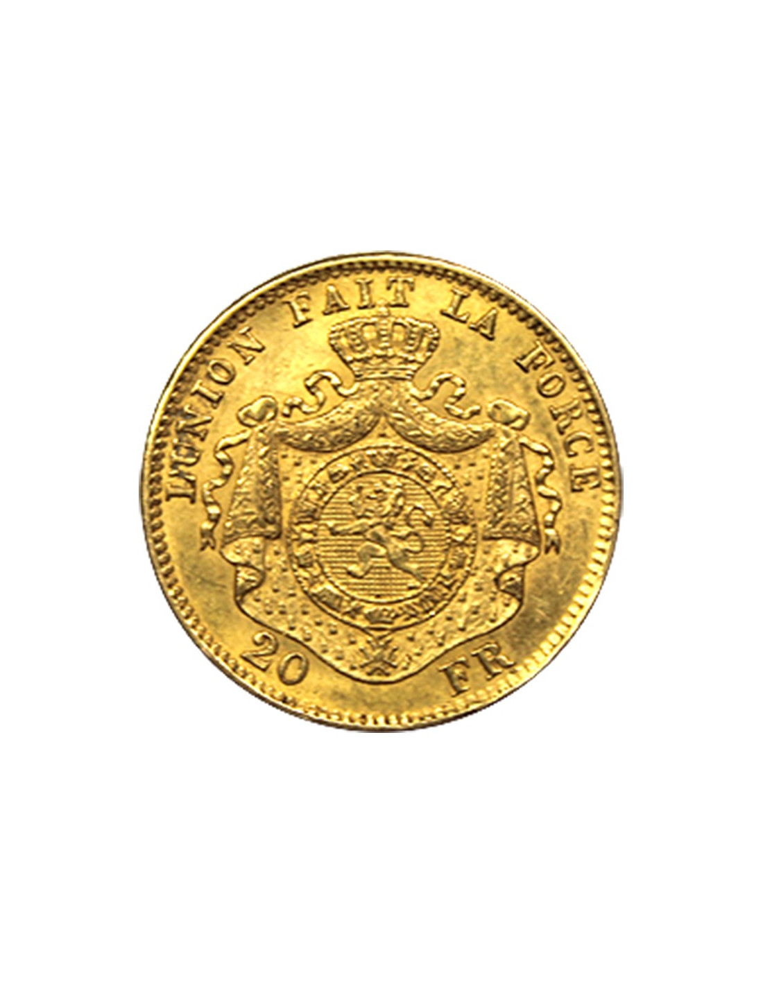 Faisant partie des premiers signataires de l'Union Latine, la Belgique propose une pièce de monnaie en or 20 Francs Belge suivant les mêmes caractéristiques que la pièce d'or d'investissement 20 Francs Napoléon. Sous le règne de Léopold Ier, un seul millésime a été frappé, 1865 (bien qu'une partie des pièces ait été émise en 1866), le roi étant décédé cette même année. Au total, ce sont 1 558 066 pièces de monnaie en or 20 Francs Belge Léopold Ier à avoir été créées. On connaît toutefois deux versions de cette pièce d'or d'investissement : une version du souverain tête nue, et une seconde laurée d'une couronne de chêne.
