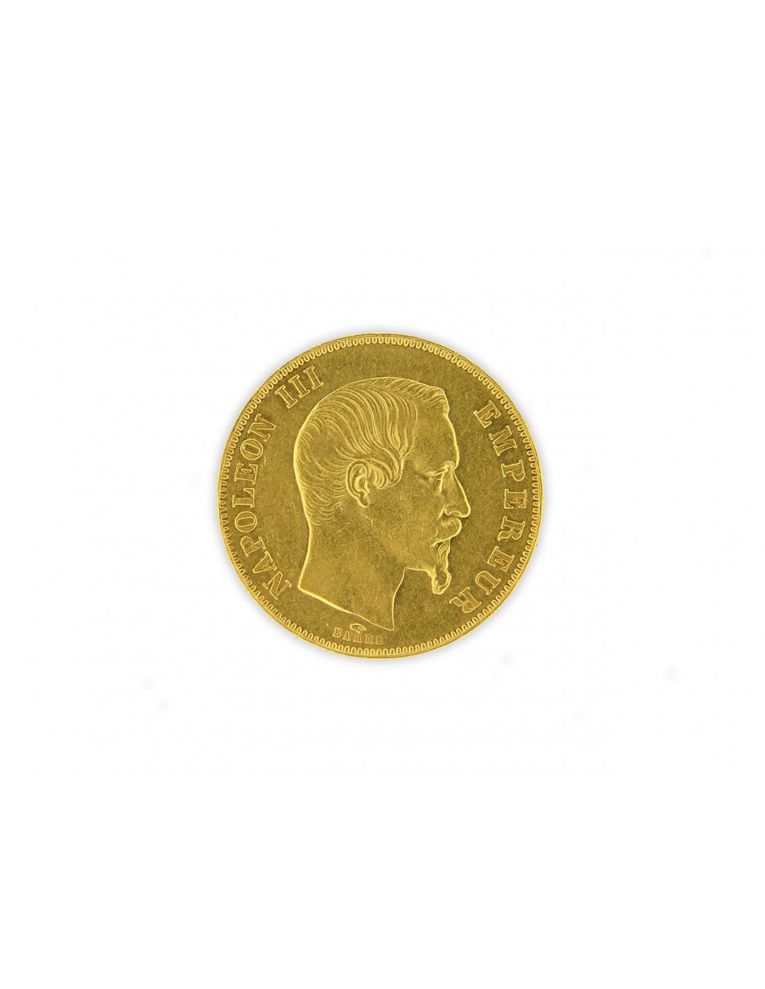 Créée en 1854, la pièce de monnaie en or 50 Francs Napoléon III vient remplacer définitivement l'ancien « double Napoléon », la pièce de 40 Francs, dans le cadre d'une réforme monétaire plus globale. Produite entre 1854 et 1868 et frappée exclusivement à Paris et Strasbourg, c'est une monnaie destinée, dès sa création, à l'investissement, à l'épargne et aux transactions importantes. Il s'agit de la première pièce d'or du Second Empire gouverné par Napoléon III.