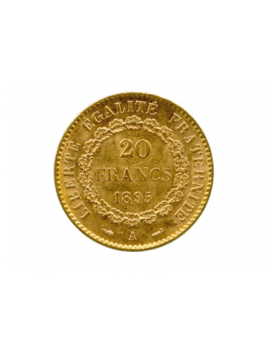 Enfin la pièce en or de la version 1896A de la 20 Francs Génie, nous pouvons retrouver un faisceau ou une torche, sur le revers de la pièce, en bas à droite. La présence de la torche étant moins commune, son prix peut valoir 2000€ en Fleur de Coin.