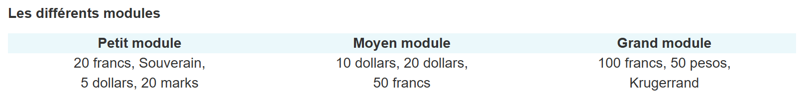 Lors de votre commande en agence, vous pouvez choisir le conditionnement des pièces dans les scellés, c'est-à-dire le nombre de pièces par scéllés. Lors de votre achat en ligne, vos pièces sont conditionnées par défaut de la manière suivante :