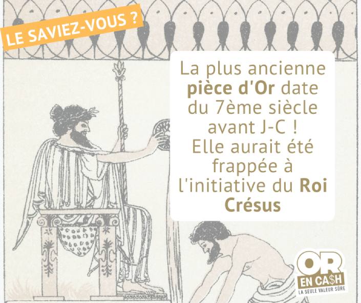 Les premières pièces de monnaies d’or auraient été frappées à l’initiative du Roi Crésus. En effet, la plus vieille pièce d’or trouvée à ce jour date du 7ème siècle avant J-C, correspondant au règne du Roi Crésus en Perse, auquel on doit la créséide. À cette époque, les créséides servaient de système monétaire bimétallique, permettant les échanges selon un rapport de valeur bien défini en fonction de leur poids.